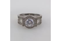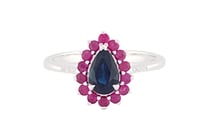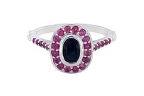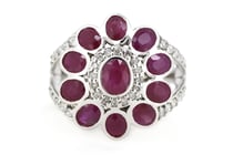 14K WHITE GOLD, RUBY AND DIAMOND, DOUBLE HALO...