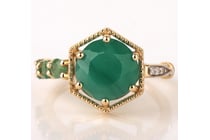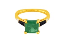9CT YELLOW GOLD EMERALD ONYX AND DIAMOND RING...