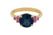 14K YELLOW GOLD, PINK SAPPHIRE AND DIAMOND,...
