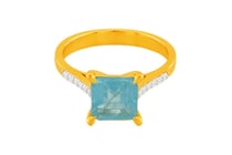 9CT YELLOW GOLD AQUAMARINE AND DIAMOND RING...