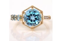 9CT YELLOW GOLD BLUE TOPAZ AND DIAMOND RING...