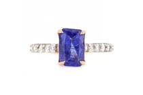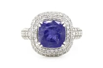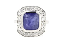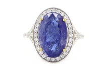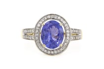 14K WHITE GOLD, TANZANITE AND DIAMOND, HALO...