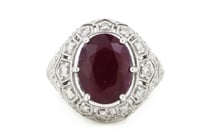 14K WHITE GOLD, RUBY AND DIAMOND, HALO DROP...