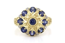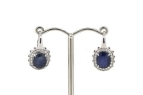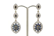 14K WHITE GOLD, BLUE SAPPHIRE AND DIAMOND, FLORAL...