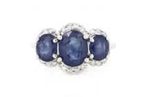 14K WHITE GOLD, BLUE SAPPHIRE AND DIAMOND,...