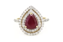 14K ROSE GOLD, RUBY AND DIAMOND, HALO DROP...