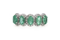14K WHITE GOLD, EMERALD AND DIAMOND, HALO...
