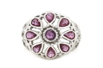 14K WHITE GOLD AND RUBY, FLORAL BRACELET....
