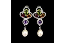 NATURAL PERAL & MULTI GEM EARRINGS....