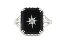 14K WHITE GOLD, ONYX AND DIAMOND, ART DECO...