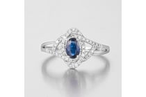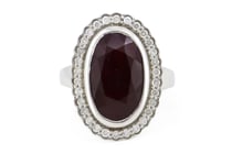 14K WHITE GOLD, RUBY AND DIAMOND, DOUBLE HALO...