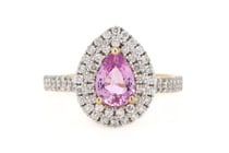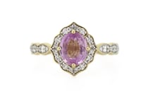 14K YELLOW GOLD, PINK SAPPHIRE AND DIAMOND, HALO...