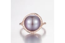 14CT ROSE GOLD PEARL AND DIAMOND HALO RING ....