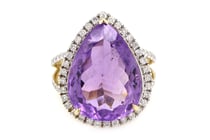 14K YELLOW GOLD, 13.49CT AMETHYST AND DIAMOND,...