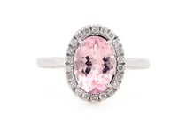 14K WHITE GOLD, MORGANITE AND DIAMOND, HALO RING....