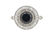 14K WHITE GOLD, BLACK DIAMOND AND DIAMOND, HALO...