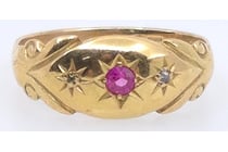 14K YELLOW GOLD, RUBY AND DIAMOND, DECORATIVE...