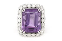 14K WHITE GOLD, 14.34CT AMETHYST AND DIAMOND,...