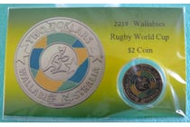 2019 WALLABIES RUGBY AUSTRALIA, CARDED $2 COIN....