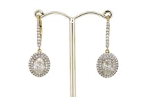 14K YELLOW GOLD AND DIAMOND, DOUBLE HALO DROP...