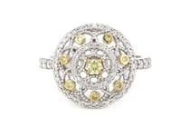 14K WHITE GOLD, FANCY YELLOW DIAMOND, ART DECO...