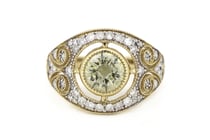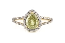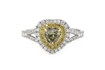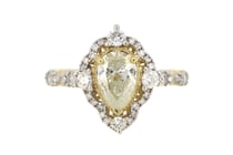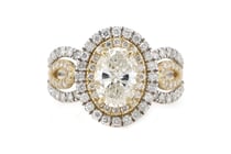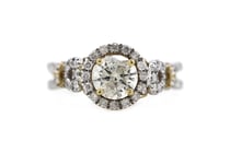 14K YELLOW GOLD, YELLOW DIAMOND AND DIAMOND, HALO...