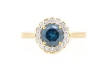 14K YELLOW GOLD, BLUE DIAMOND AND DIAMOND, HALO...