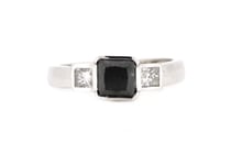 14K WHITE GOLD, BLACK DIAMOND, TRILOGY RING....