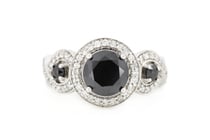 14K WHITE GOLD, BLACK DIAMOND AND DIAMOND, HALO...