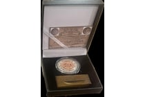 BRADMAN 5 DOLLAR BI METAL COIN ON CARD OF ISSUE...