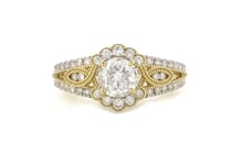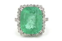 14K WHITE/YELLOW GOLD, EMERALD AND DIAMOND, HALO...
