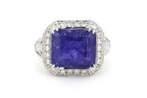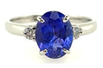 18KT WHITE GOLD TANZANITE AND DIAMOND RING...