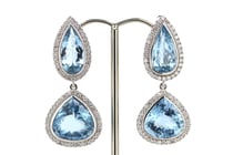 14K WHITE GOLD, AQUAMARINE AND DIAMOND, STATEMENT...
