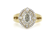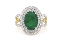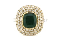 14K YELLOW GOLD, EMERALD AND DIAMOND, DOUBLE HALO...