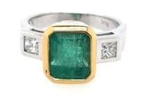 14K WHITE/YELLOW GOLD, 8.14CT COLOMBIAN EMERALD...