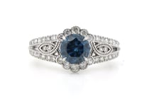 14K WHITE GOLD, FANCY BLUE DIAMOND, HALO FILIGREE...
