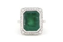 14K WHITE GOLD, 9.17CT EMERALD AND DIAMOND,...