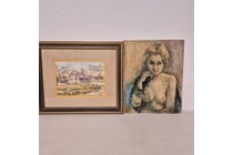 2 FRAMED ORIGINAL WATERCOLOUR PAINTING ON CANVAS...