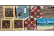 NINE MIXED MEDIA ARTWORKS ON CANVAS Item Size:...