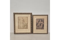 2 FRAMED PENCIL SKETCH ON PAPER SIGNED Item...