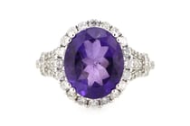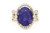 14K YELLOW GOLD, TANZANITE AND DIAMOND, HALO...