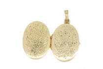 14K YELLOW GOLD, FLORAL ENGRAVED, OVAL LOCKET....