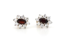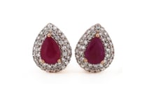 14K ROSE GOLD, RUBY AND DIAMOND, DOUBLE HALO STUD...