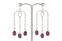 14K WHITE GOLD, RUBY AND DIAMOND, CHANDELIER...