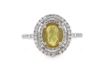 14K WHITE GOLD, YELLOW SAPPHIRE, GOLDEN CULTURED...