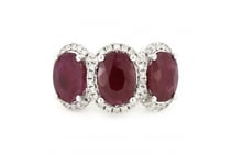 14K WHITE GOLD, RUBY AND DIAMOND, ART DECO...