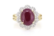 9K YELLOW/WHITE GOLD, RUBY AND CUBIC ZIRCONIA,...