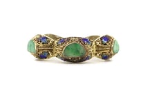 ANTIQUE GILDED STERLING SILVER, ENAMEL AND JADE....