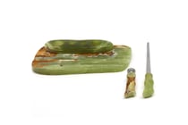 14K YELLOW GOLD, CUFFLINKS WITH GREEN (JADE LIKE)...
