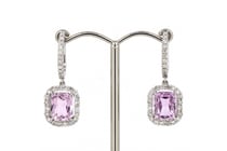 14K WHITE GOLD, KUNZITE AND DIAMOND, HALO DROP...